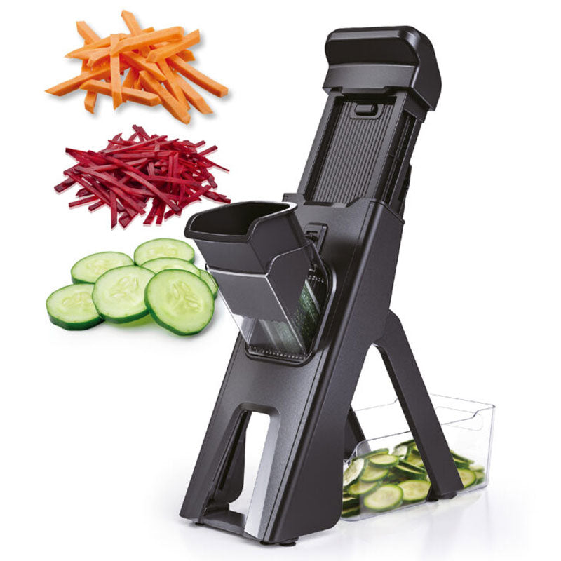 מעבר ליכולות החיתוך המרשימות, הסלייס פרו תוכנן מתוך מחשבה על נוחות ובטיחות. המכשיר כולל מנגנון קפיצי המאפשר עבודה חלקה ורציפה, ומיכל איסוף שקוף הקולט את הירקות החתוכים. עיצובו הארגונומי מאפשר שימוש יציב ובטוח. לאחר השימוש, המכשיר מתקפל לאחסון קומפקטי ונוח, וחלקיו קלים לניקוי מהיר. זוהי התוספת המושלמת לכל מטבח המאפשרת הכנת מגוון סוגי סלטים ותבשילים במהירות וביעילות.