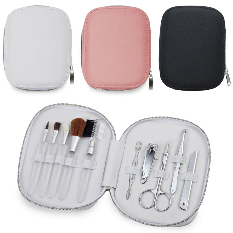 תאור סט מניקור ומברשות איפור בנרתיק דמוי עור יוקרתי