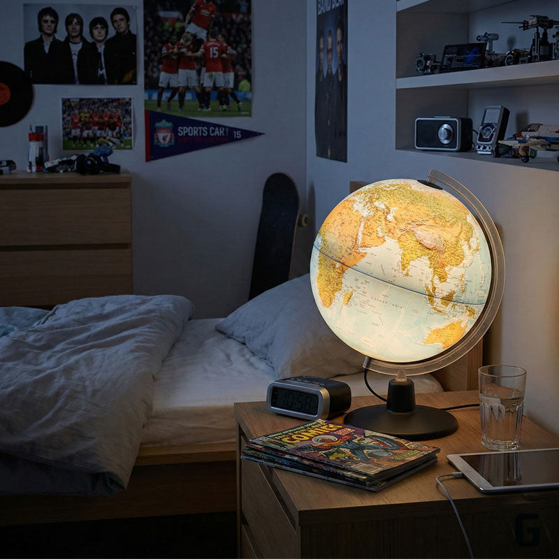 גלובוס ALTO תלת מימד מגדיר מחדש את הדרך בה אנו מתבוננים בעולם, תוך שילוב מתוחכם בין כלי למידה אינטראקטיבי לפריט עיצובי יוקרתי. הייחודיות של גלובוס זה טמונה בתצוגה הכפולה שלו: במצבו הכבוי, הוא מציג מפה פיזית מפורטת של כדור הארץ, המדגישה את הטופוגרפיה הטבעית, הימים והיבשות. ברגע שמדליקים את התאורה הפנימית, הגלובוס משנה את פניו וחושף מפה פוליטית עדכנית, המשרטטת בבירור את גבולות המדינות השונות. מעבר זה בין המימד הגיאוגרפי-פיזי למימד המדיני-פוליטי הופך אותו לכלי עזר לימודי יוצא דופן.