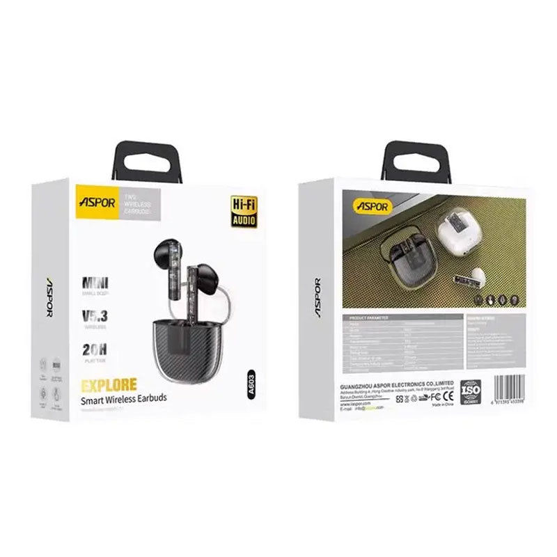 אוזניות TWS סטריאופוניות ASPOR A603 בעיצוב שקוף וחדשני
