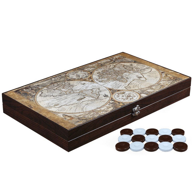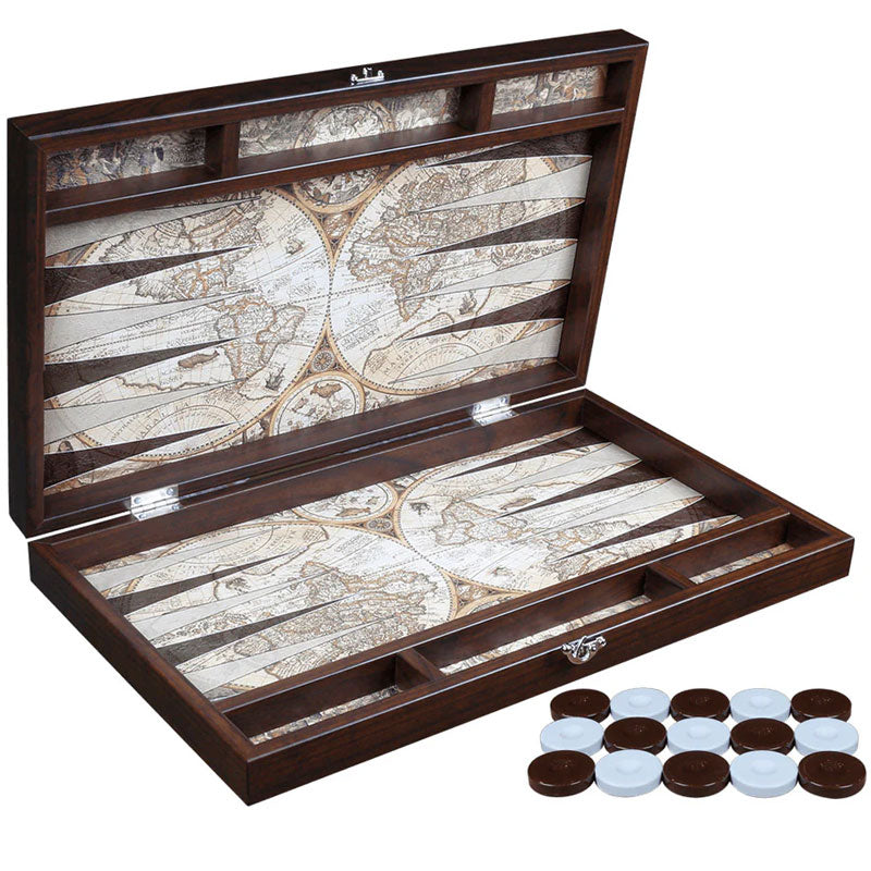לוח שש-בש יוקרתי בעיצוב מפת העולם העתיקה