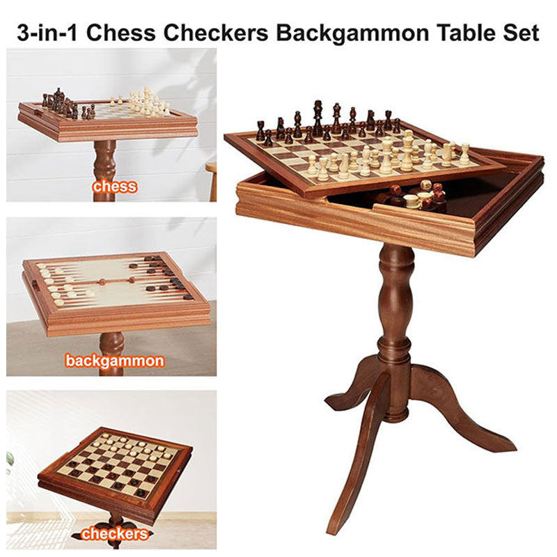 תאור שולחן משחקים יוקרתי מעץ 3 ב 1 שחמט שש בש ודמקה