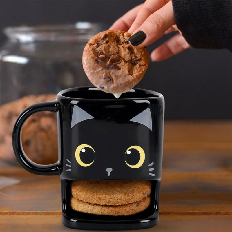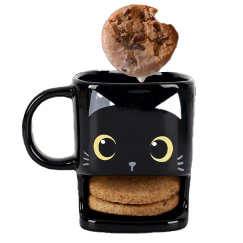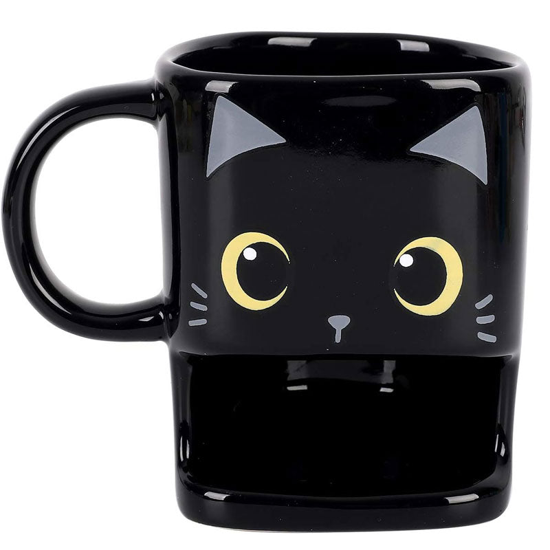 - ספל חתול שחור מעוצב עם עיניים גדולות