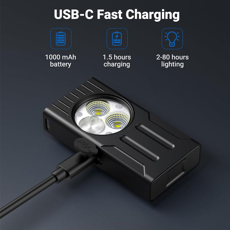 מיני פנס מקצועי זה מופעל באמצעות סוללה נטענת (כלולה) בחיבור TYPE-C (כבל טעינה כלול)