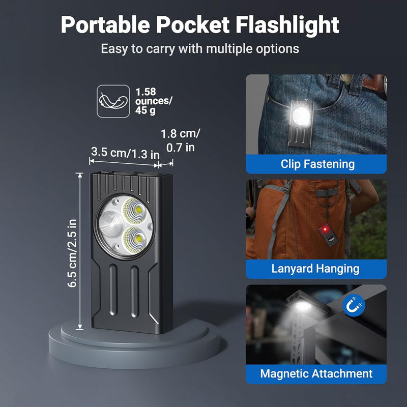 אל תתנו לגודל הקומפקטי להטעות אתכם! מיני פנס ה-EDC-1 הזה הוא תחנת כוח אמיתית שנכנסת לכף היד. עם עוצמת הארה מדהימה של 1000 לומנס ומשקל נוצה של 45 גרם בלבד, הפנס הזה הוא הגדרה מחדש של המושג "פנס כיס". הוא עוצב במיוחד לנשיאה יומיומית (EDC) ומתחבר בקלות למחזיק המפתחות או לתיק, כך שהוא תמיד זמין כשצריכים אותו. בין אם אתם הרפתקנים שיוצאים לטרק, רוכבי אופניים שזקוקים לנראות, או פשוט צריכים תאורה חזקה להפסקת חשמל בבית, הגאדג'ט הזה סוגר לכם את הפינה בצורה מושלמת.