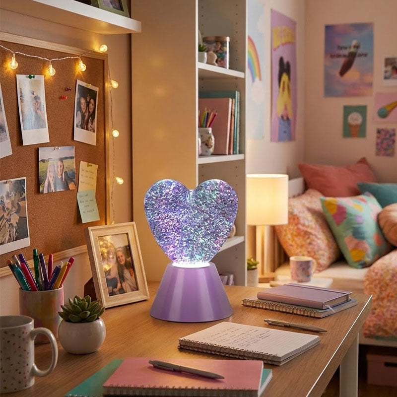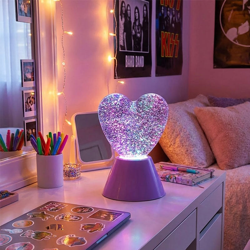 מנורת לב גליטר צבעונית