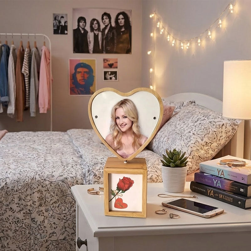 מחפשים את הדרך הכי רומנטית ומקורית להציג את הרגעים היפים שלכם? מסגרת הלב המסתובבת היא הרבה יותר מסתם מעמד לתמונה! היא פריט עיצובי שמעניק חיים לזיכרונות. המסגרת עשויה עץ איכותי במראה טבעי ונקי, המשתלב נהדר בכל חדר שינה או סלון. הקסם הגדול שלה טמון במנגנון הסיבוב הייחודי: המסגרת העליונה בצורת לב מסתובבת 360 מעלות בצורה מדליקה, מה שמאפשר להציג את התמונות מזוויות שונות ויוצר עניין ויזואלי דינמי שמושך את העין מיד.