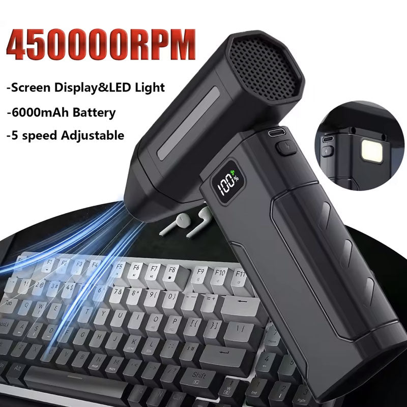 מיני מאוורר טורבו סילון – לא רק מאוורר, זה גאדג'ט על ! זה אולי נראה כמו מאוורר קטן, אבל בפועל מדובר בכלי עוצמתי, חכם ורב-שימושי שלא תבינו איך הסתדרתם בלעדיו. עם מנוע brushless במהירות מטורפת של 450,000 סל”ד, סוללה של 6000mAh ובורר עוצמה – אתם שולטים ברוח. מתאים לריענון אישי, לייבוש מהיר, לניקוי עמוק ולמשימות שדורשות דיוק.
