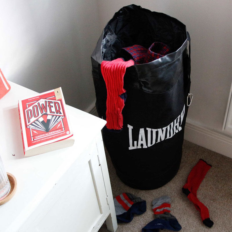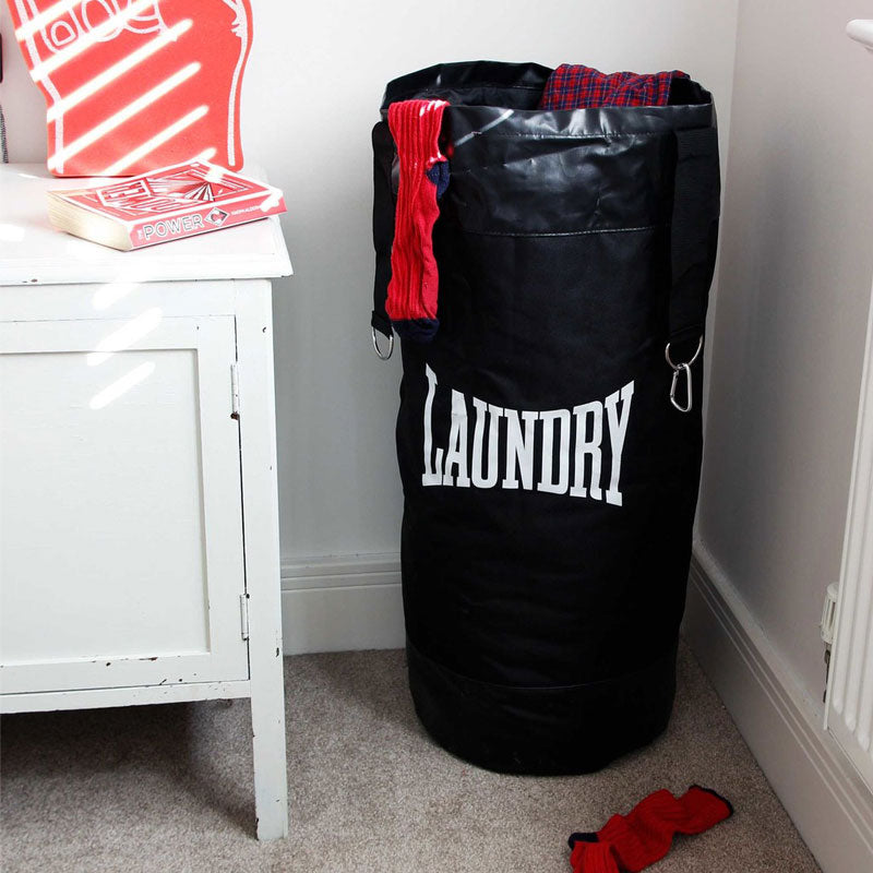 תאור סל כביסה מעוצב שק איגרוף - הופכים את הכביסה לאימון כושר