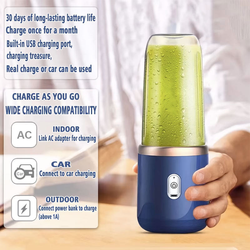 שייקר בלנדר נייד נטען עם 6 להבים זה מופעל באמצעות סוללה נטענת בחיבור USB (כבל טעינה כולל)
