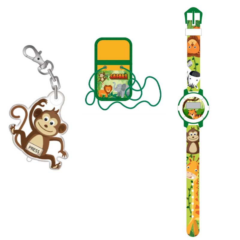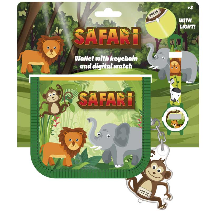 סט ספארי לילדים ארנק שעון דיגיטלי ומחזיק מפתחות
