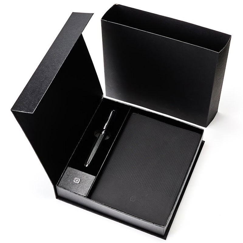 זה הסט שמניחים על השולחן ומבינים שמדובר באיש מקצוע. סט סוויס מחברת ועט מגיע באריזת מתנה מהודרת בצבע שחור אלגנטי ומיד נותן תחושה של יוקרה ופרימיום. הסט מתאים למנהלים, ללקוחות חשובים, לחברות שרוצות להעניק מתנה מכובדת ולכל מי שאוהבים ציוד כתיבה שנראה טוב ולא סתם עוד מחברת.