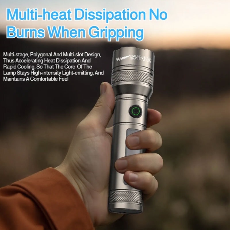 התכנון הארגונומי ניכר בכל פרט. טבעות אחיזה מחורצות מונעות החלקה, הגוף המתכתי מרגיש מוצק אך נוח לנשיאה, והמעבר בין עוצמה גבוהה לעוצמה חלשה מאפשר חיסכון בסוללה כאשר אין צורך במקסימום אור.