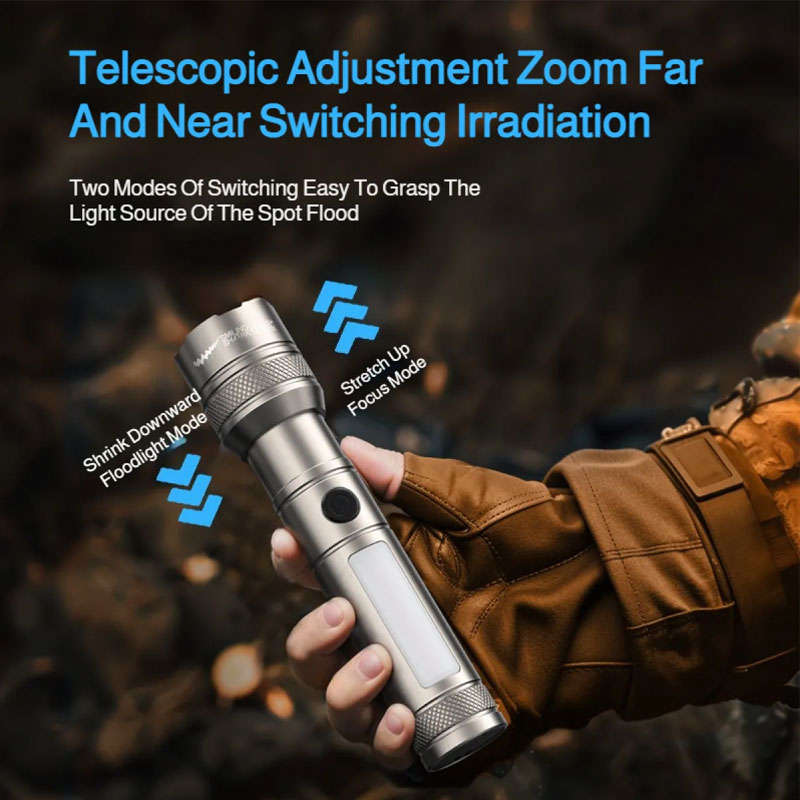 • פנס זום עם פוקוס משתנה לטווח רחוק - עד 1 קילומטר!