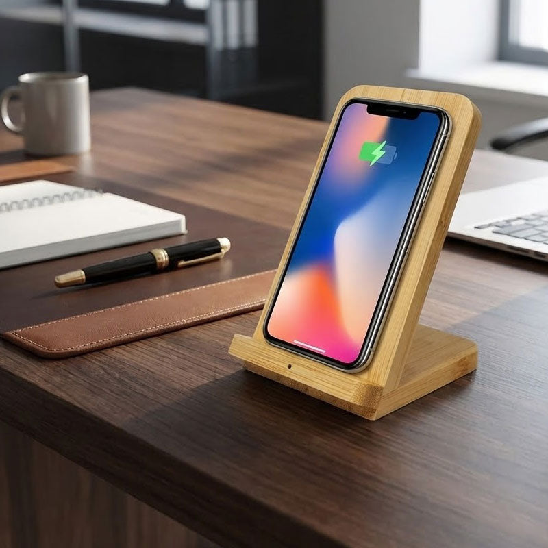 בעידן שבו הטלפון החכם הוא כלי העבודה המרכזי שלנו, שמירה על סוללה מלאה וזמינות גבוהה היא הכרח ולא מותרות. מעמד הטעינה האלחוטי החדש, העשוי עץ במבוק טבעי ואיכותי, מציע פתרון אלגנטי המשלב בין טכנולוגיה מתקדמת לבין עיצוב נקי ויוקרתי. במקום להתעסק עם כבלים מסורבלים המשתרכים על שולחן העבודה ומייצרים אי סדר, המעמד מאפשר הנחה פשוטה של המכשיר ותחילת טעינה מיידית, מה שמבטיח סביבת עבודה מאורגנת ואסתטית יותר.